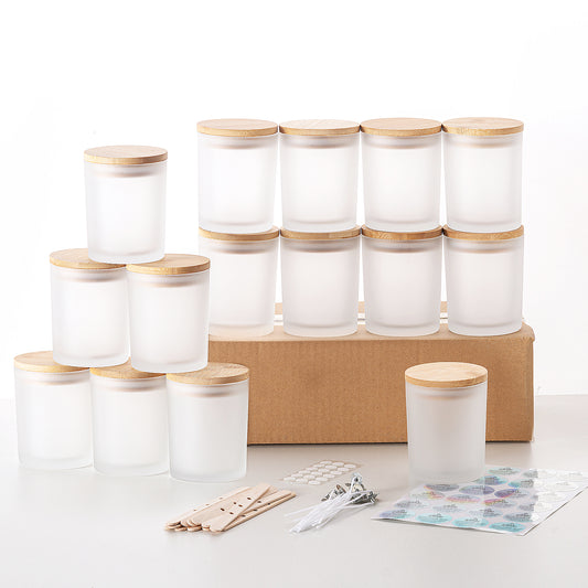 15 Pack 7 oz Clear Glass Candle Jars with Bamboo Lids – Candle Making Kit Includes Wick Holders, Wicks, Labels, and Glue Dots – Reusable and Versatile