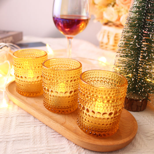 12 pcs Amber Glass Votive Candle Holders – Tealight Candle Holders for Weddings, Table Centerpieces, Home and Holiday Decor