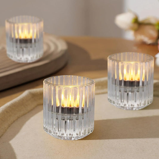 6 pcs Glass Candle Holders – Versatile Taper and Tealight Holders for Table Centerpieces, Weddings, Parties, and Festivals