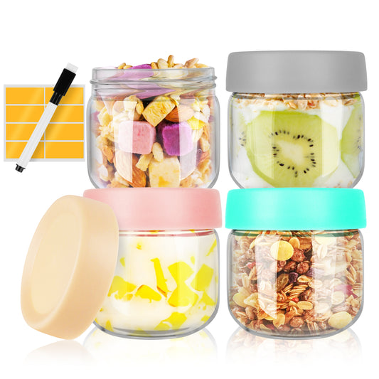 4-Pack 8 oz Glass Baby Food Containers with Lids, BPA-Free Storage Jars for Breast Milk, Fridge-Freezer & Microwave Safe