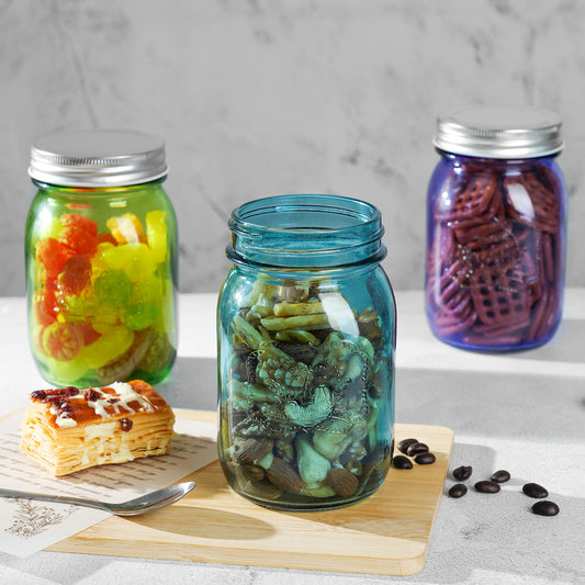6-Pack 16 oz Glass Food Storage Jars - Regular Mouth Mason Jars with Airtight Lids, Colored Canning Jars for Coffee, Spice, Tea (12 Pieces in 3 Colors)
