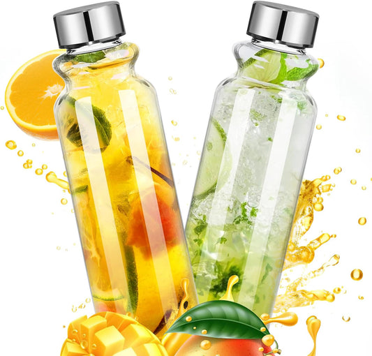 18oz Glass Water Bottles - 2 Pack with Lids, Wide Mouth Reusable Containers for Juice and Smoothies